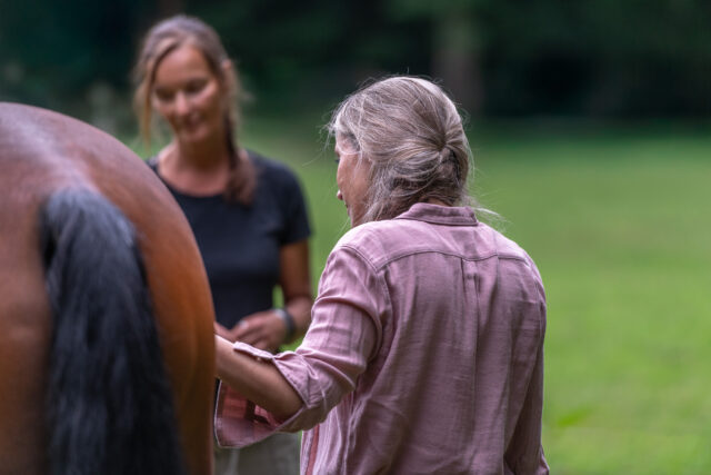 Dit doen we in aanwezigheid van de paarden zodat zij hier op kunnen reageren. Zo vinden we waardevolle informatie die we anders gemist zouden hebben.
